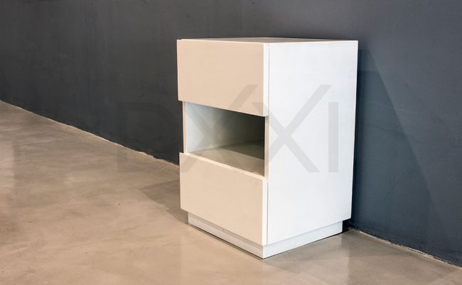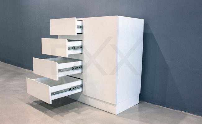 Chifonier con seis cajones amplios con correderas telescòpicas con opción de organizador. Estructura de apoyo y cuerpo de MDF laqueado.